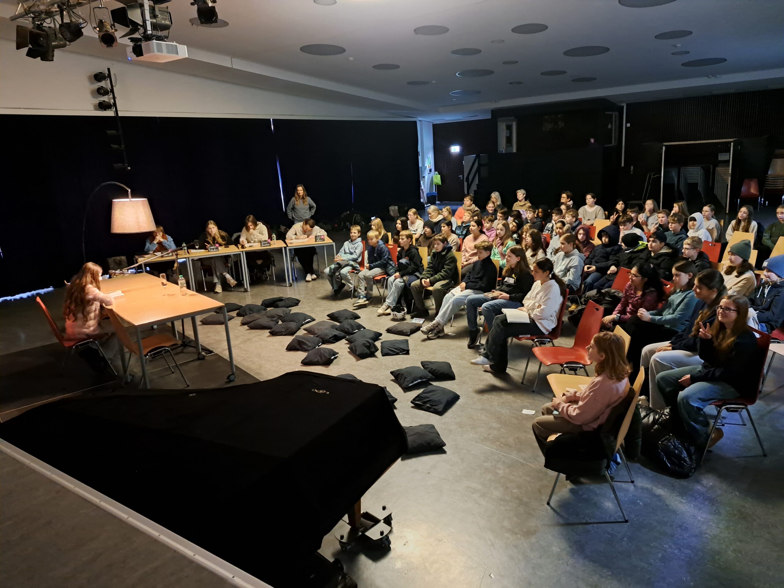 Wir, zehn Schülerinnen und Schüler der Klassen 6a, 6b, 6c, 6d, 6e, 6f und 6g, haben uns am 2.12.2025 als Zuschauer bei dem Vorlesewettbewerb in der Aula getroffen. Ich werde euch davon berichten. Der Vorlesewettbewerb begann eigentlich um zehn Uhr. Wir haben uns alle in der Aula eingefunden. Wir, die zehn Schüler*innen aus allen 6. Klassen, saßen vor den Vorlesern. Aus unserer Klasse trat Lewin an. Die erste Runde war knapp aber Lewin ist unter die ersten drei gekommen. Das war ein Triumph für unsere Klasse. Wir freuten uns für Lewin. In der zweiten Runde mussten die besten drei Vorleser einen fremden Text lesen, den man vorher nicht durchlesen durfte. Lewin belegte den dritten Platz, trotzdem freuten wir uns, dass er so weit gekommen ist. Den ersten Platz hat Frieda aus der Klasse 6g gemacht! Dann haben Zeynab und ich noch beim Aufräumen geholfen. Das war es schon, lieber Leser und liebe Leserin.