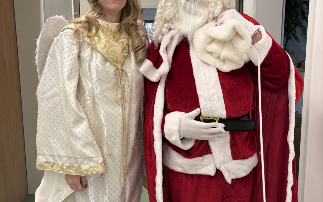Nachdem der Weihnachtsmann und sein Engel durch alle fünften Klassen gegangen ist und noch ein paar Süßigkeiten verteilt hat, hieß es für alle Schülerinnen und Schüler sowie die Lehrkräfte „Ab nach Hause“!
