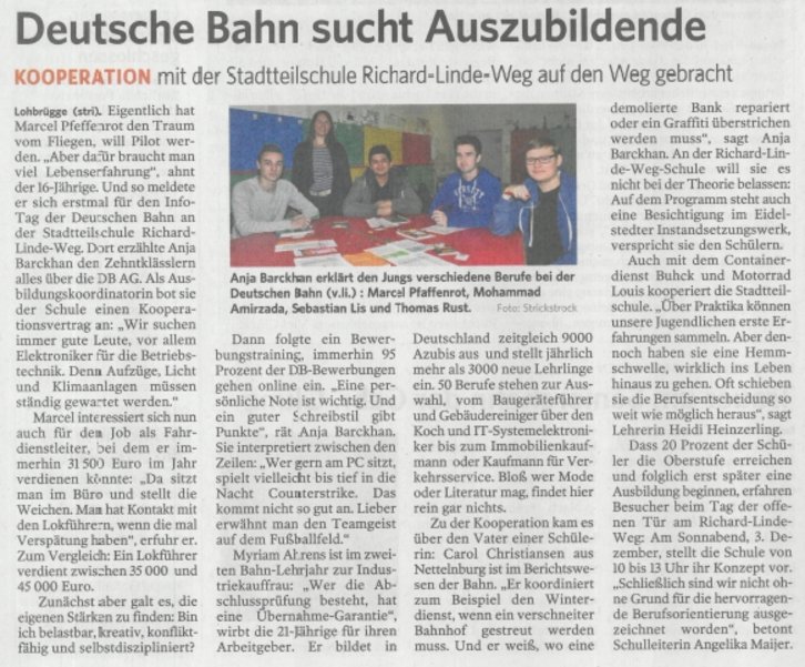 Unser Thema: Wie kann eine gute Zusammenarbeit zwischen unserer Schule und der Deutschen Bahn stattfinden?