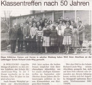 Im September 2022 besuchte uns die RLW-Abschlussklasse 9b von 1977 und erkundete, mit Erinnerungen und Geschichten aus der eigenen Schulzeit im Gepäck, die fast komplett neu errichteten Schulgebäude am Richard-Linde-Weg. Ein Klassentreffen nach 45 Jahren – das ist schon selten. Dass die Ehemaligen ihre Schule aber nicht wiedererkennen, zeigt die umfassenden baulichen Veränderungen, die in den letzten 5 Jahren am Richard-Linde-Weg geschehen sind.