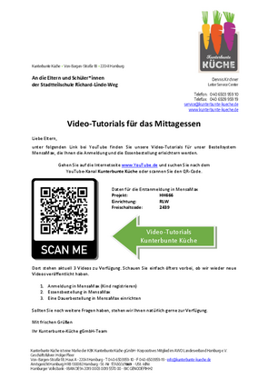 Ein Videotutorial zeigt die Schritte zur Anmeldung Ihres Kindes zum Mittagessen.